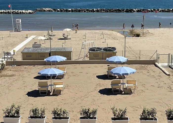 海辺の62m²のVilla "Baci Sul Mare" Attico- Spiaggia Privata リミニはカヴール広場から6kmに位置し、ビジネスにもレジャーにもWiFiを利用することができます。 ピッツァ トレ マルティーリはこの広々としたアパートから車で15分で、リミニ空港から15キロメートルです。